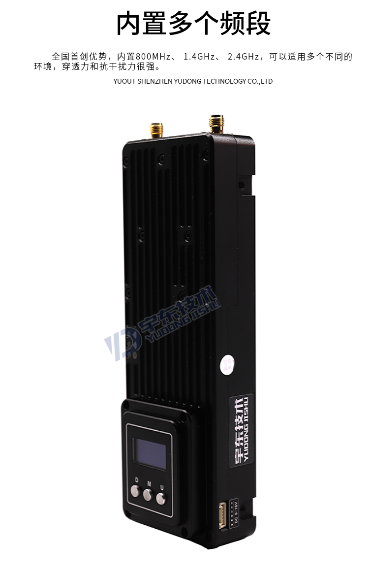 9、內置三個無線頻率:800MHz、 1.4GHz、 2.4GHz 液晶可設置