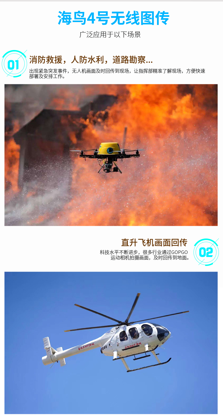 廣泛應(yīng)用于軍事偵察、邊防巡邏、公安技偵、航拍、空中測繪、電力巡查、鐵路搶險、海事執(zhí)法、城管執(zhí)法、新聞密訪、衛(wèi)生防疫等或突發(fā)事件應(yīng)急指揮、無人車、無人船、特種機(jī)器人等領(lǐng)域。設(shè)備體積小可偽裝做密訪取證、空中作業(yè)圖傳、無人機(jī)無線圖像傳輸。